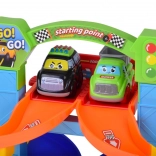 Der doppelte Startturm mit „Starting Point“ und Hebel lässt zwei Autos gleichzeitig losfahren. Kinder erleben einen spannenden Start und können Seite an Seite um die Wette fahren.