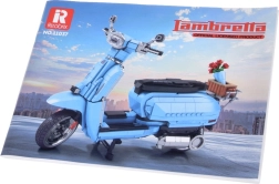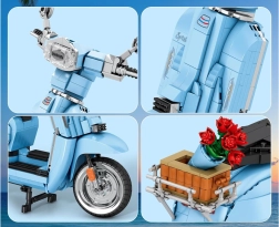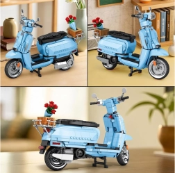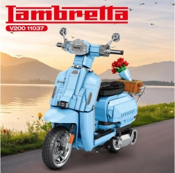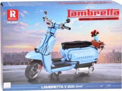 Bauen Sie sich den ikonischen italienischen Roller LAMBRETTA V200 Special in elegantem Hellblau. Der lizenzierte Bausatz mit 1169 Teilen begeistert Sammler und Designfans. Er bietet detailgetreue Ausführung, einen stabilen Ständer, öffnende Elemente und einen stilvollen hinteren Korb mit Rosen für eine attraktive Präsentation.
