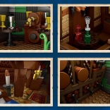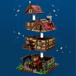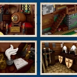 Dieses große mittelalterliche Haus/diese Taverne ist der ideale Ort für Ritter und Adelige nach anstrengenden Feldzügen. Freuen Sie sich auf einen reich ausgestatteten Innen- und Außenbereich, vom Fass mit „gezapftem Bier“ über Tische mit Kelchen bis hin zur Waffenkammer mit Schwertern und Schilden. Dank der 2868 Teile bauen Sie ein detailreiches Gebäude mit mehreren Ebenen und Dekorationen, die Fantasie und Geschichtenerzählen anregen.