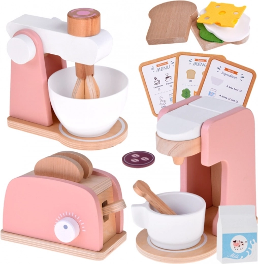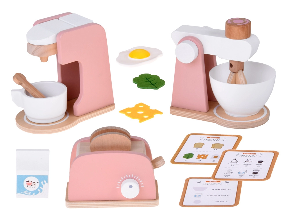Verwandeln Sie das tägliche Spiel in der Kinderküche in ein realistisches Erlebnis. Das Holz-Set mit Küchengeräten bietet alles für die Zubereitung eines „Frühstücks“ – vom herausspringenden Toast über köstlichen „Kaffee“ bis zu gemischten Leckereien. Langlebige Ausführung aus Holz, glatte Kanten und sanfte Farben sind ideal fürs Kinderzimmer.