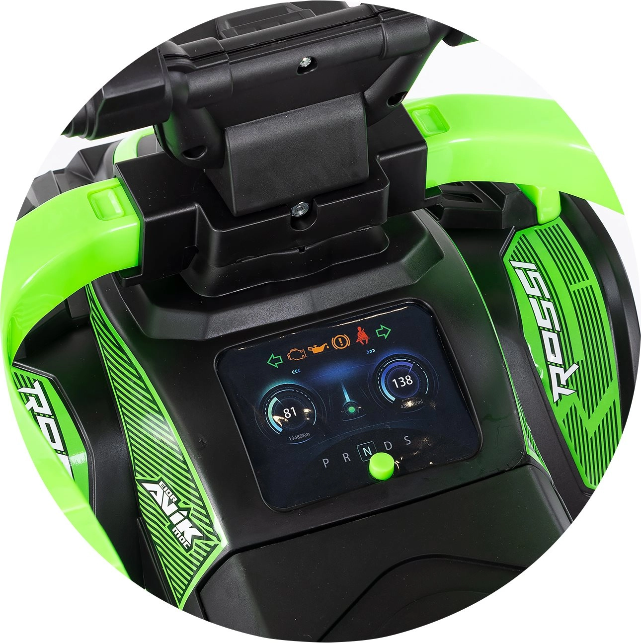 Sportlicher Quad-Look, Licht- und Soundeffekte (3× AA, nicht im Lieferumfang) und die übersichtliche Bedienung am Lenker begeistern kleine Fahrer.