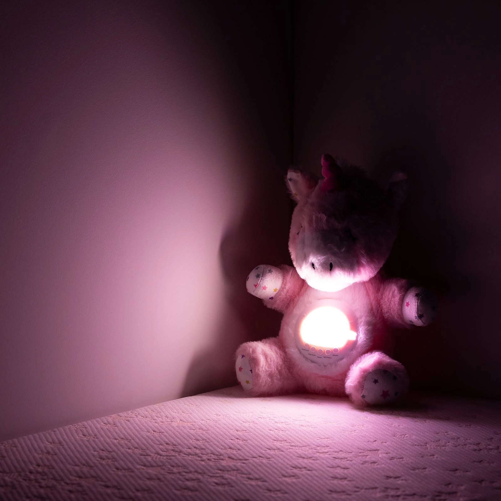 Das integrierte LED-Licht am Bäuchlein strahlt ein weiches Leuchten aus, das nicht stört und Geborgenheit vermittelt.