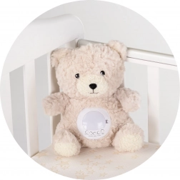 Der beige Plüsch-Teddybär CHIPOLINO ist ein weicher Begleiter, der Kindern beim ruhigen Einschlafen hilft. Er kombiniert beruhigende Geräusche, Melodien und sanfte Lichteffekte, die eine angenehme Schlafumgebung schaffen. Dank des Wein-Sensors aktiviert er sich von selbst, wenn das Kind zu weinen beginnt, und bietet sofortige Beruhigung ohne Ihr Eingreifen.