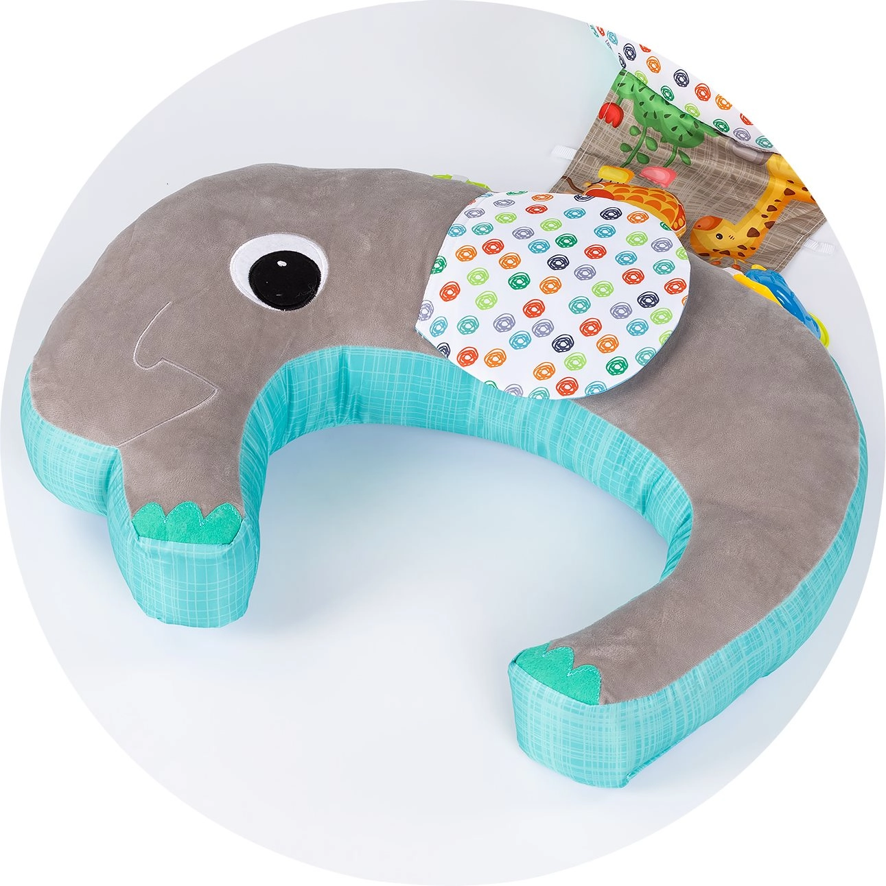 Die U‑Form des Kissens stützt das Baby stabil während der Bauchlage und erleichtert das Anheben des Köpfchens sowie das Trainieren der Nackenmuskulatur.