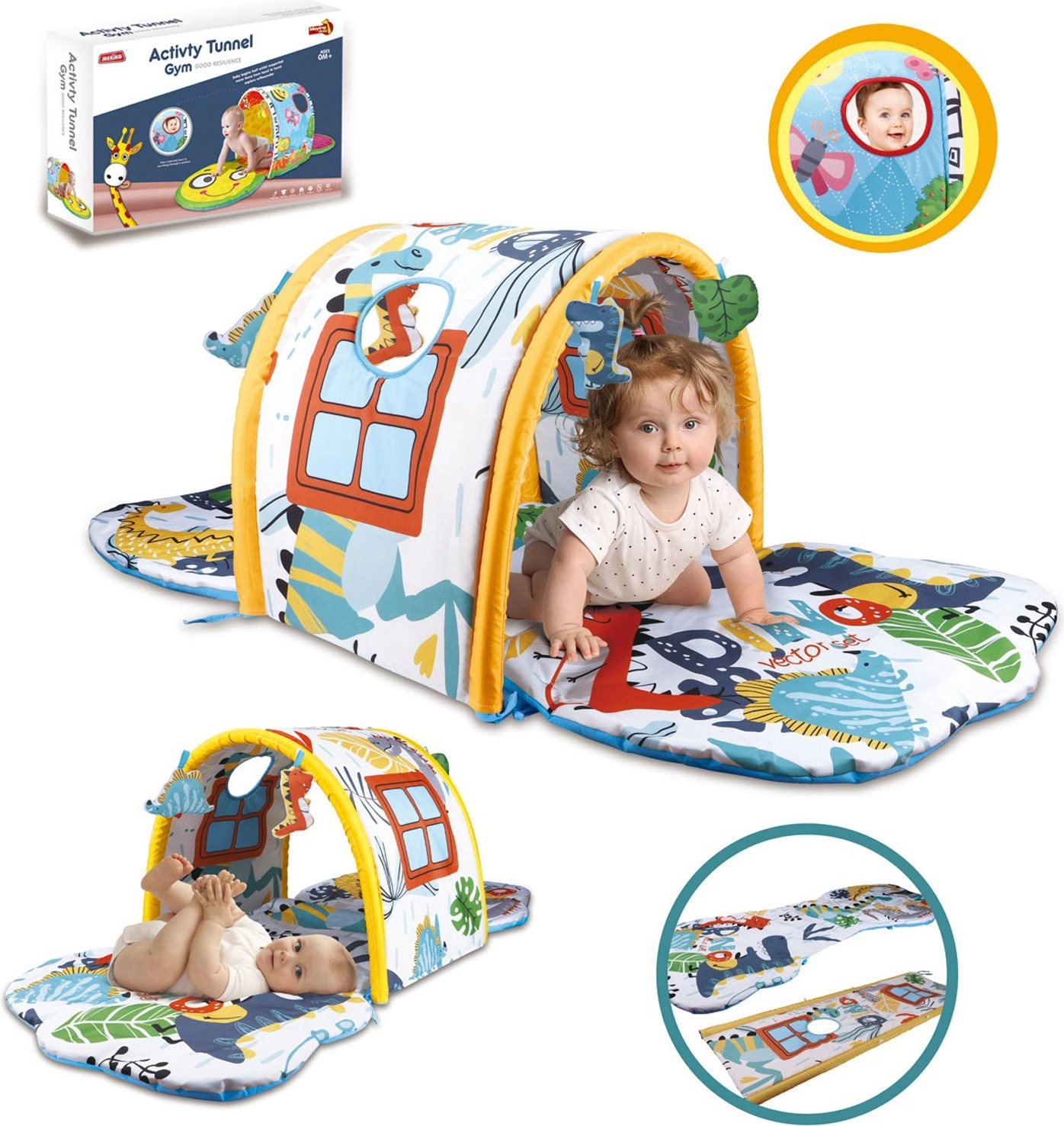 Der leichte, sichere Tunnel lädt Kinder zum Entdecken ein, zum Anheben des Köpfchens und zu den ersten Krabbelversuchen.