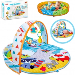 Die bunte und weiche Spieldecke CHIPOLINO Animals ist ideal für die ersten Entdeckungen Ihres Babys. Sie bietet zwei Bögen mit hängendem Spielzeug, verschiedene Texturen und Formen einschließlich Beißring, raschelnden und rasselnden Elementen. Sie fördert die Feinmotorik, die Hand-Auge-Koordination und die sensorische Entwicklung. Geeignet ab der Geburt, bequem für das Spielen in Bauch- und Rückenlage und leicht zu falten und zu transportieren.
