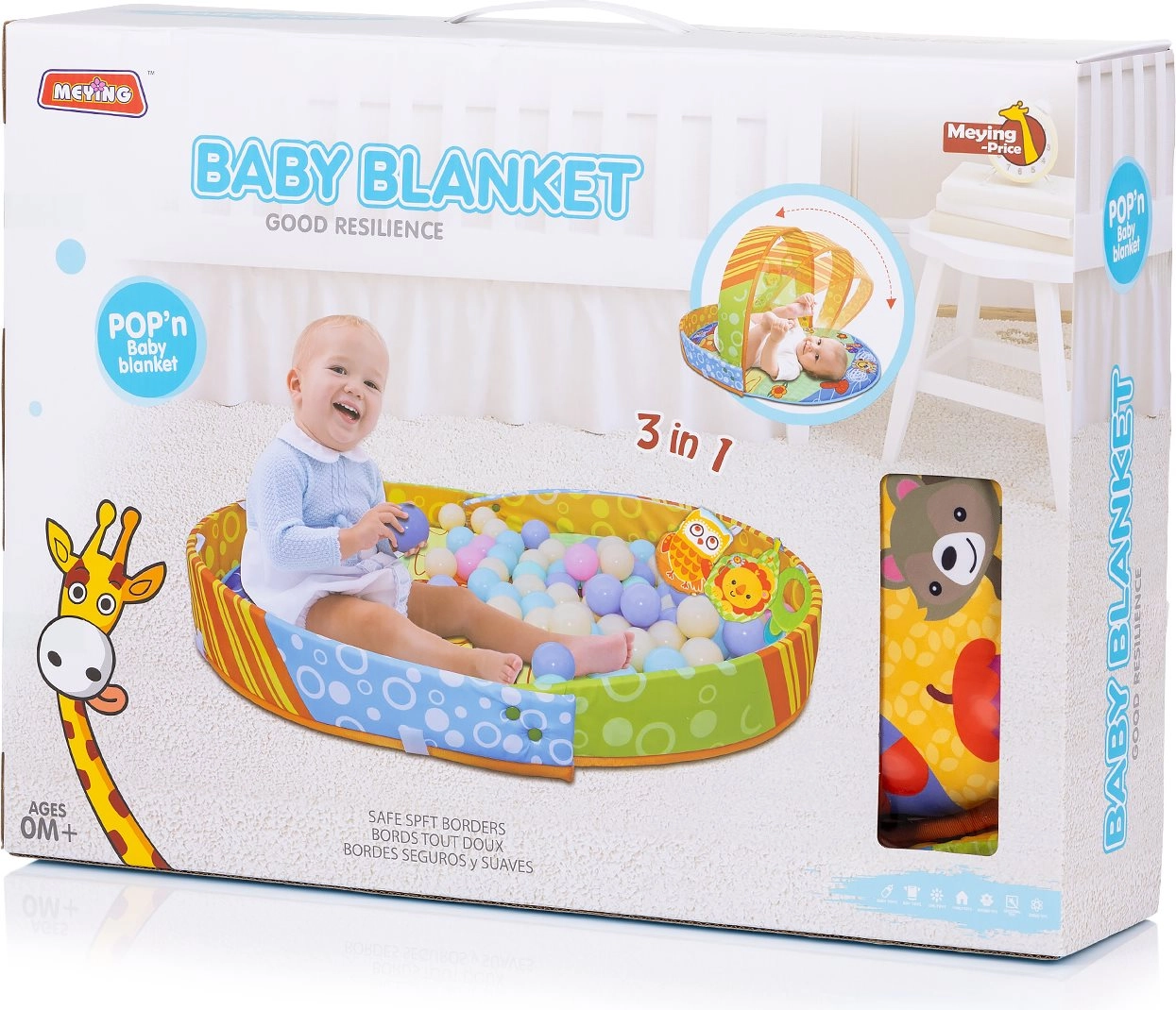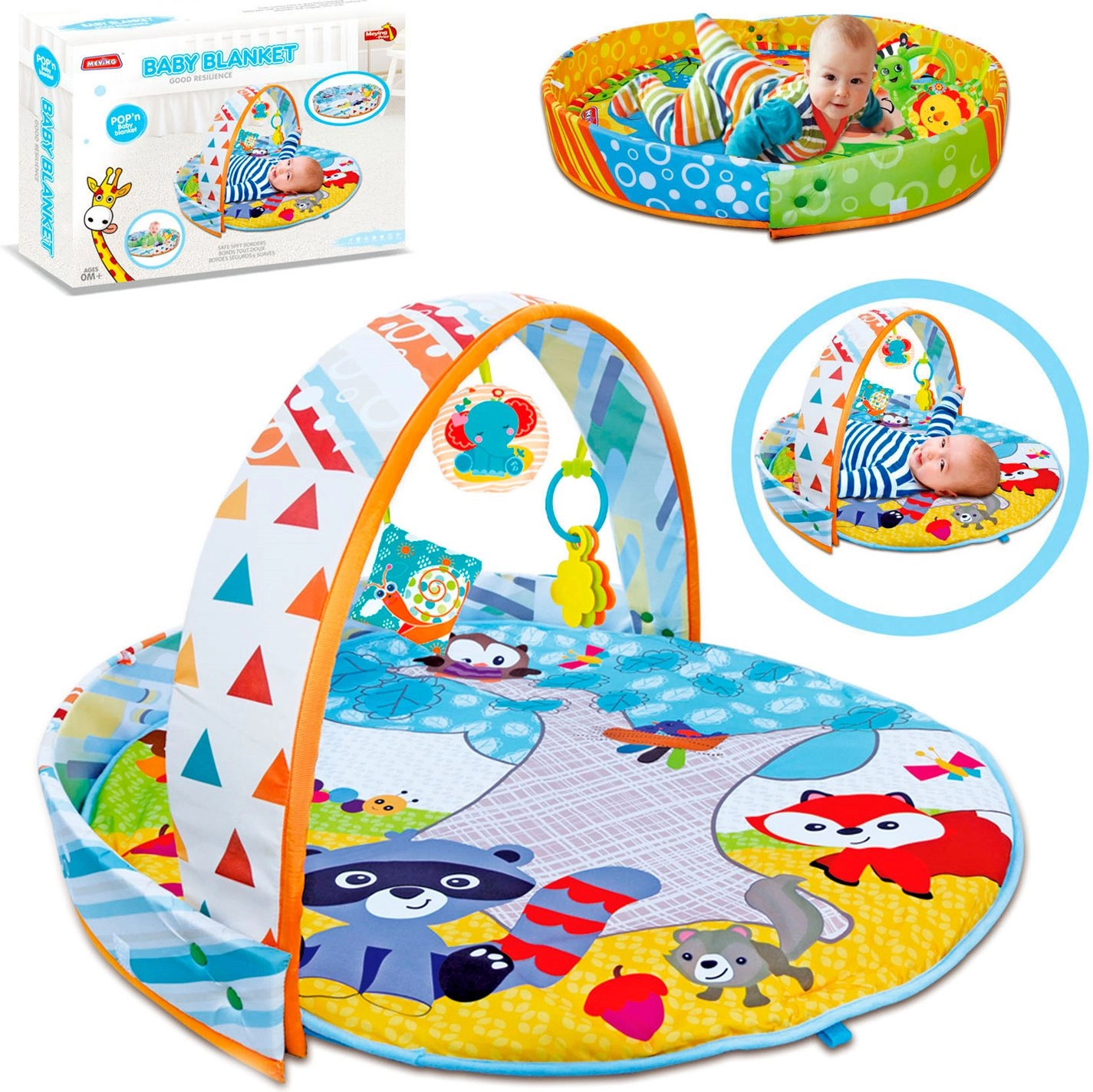 Enthalten sind weiche Plüschkissen, ein Beißring, Rasseln und Raschelelemente, die Hören, Sehen und Tastsinn stimulieren. Die Decke ist ideal für Tummy Time (Spielen in Bauchlage) und entspanntes Beobachten in Rückenlage. Dank der einfachen Faltbarkeit lässt sie sich leicht transportieren oder verstauen.