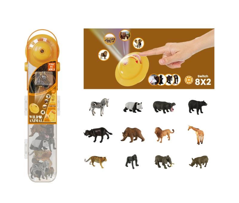 Das Set Plejo Wilde Tiere mit Projektor nimmt Kinder mit auf ein abenteuerliches Safari-Erlebnis voller Löwe, Elefant, Panda, Nilpferd und weiterer Freunde. Der Projektor ist für die einfache Bedienung mit Kinderhänden konzipiert und projiziert klare, farbenfrohe Bilder an Wand oder Decke. Ebenfalls enthalten sind kleine Tierfiguren, die den projizierten Motiven entsprechen – so können Kinder Formen, Farben und Details vergleichen.