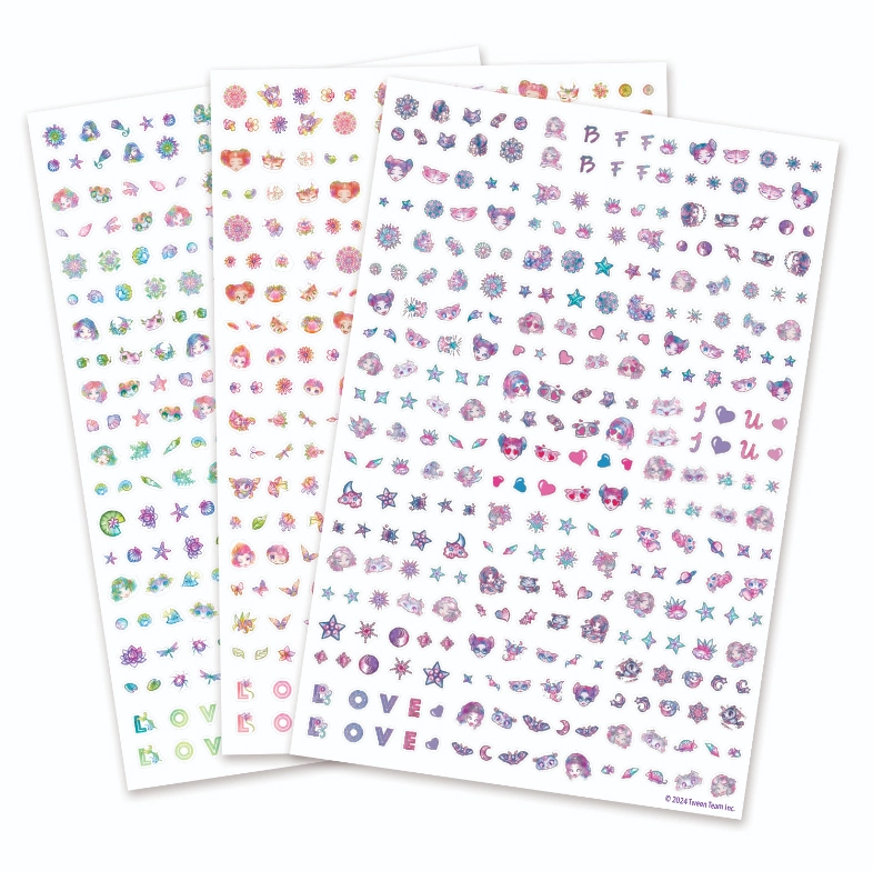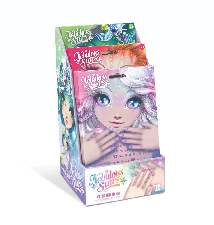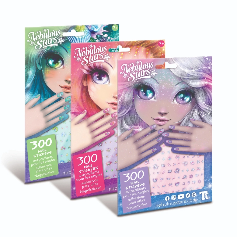Entdecken Sie die Magie der lackfreien Maniküre mit der Nebulous Stars Kollektion! Dieses unterhaltsame Set bietet 300 Sticker in 3 magischen Designs, inspiriert von den Figuren ESTRELIA, PETULIA und MARINIA. Die Sticker lassen sich leicht aufkleben und entfernen, sind sicher und ideal für Kinder ab 7 Jahren – für kreative und farbenfrohe Nägel ganz ohne Chaos.