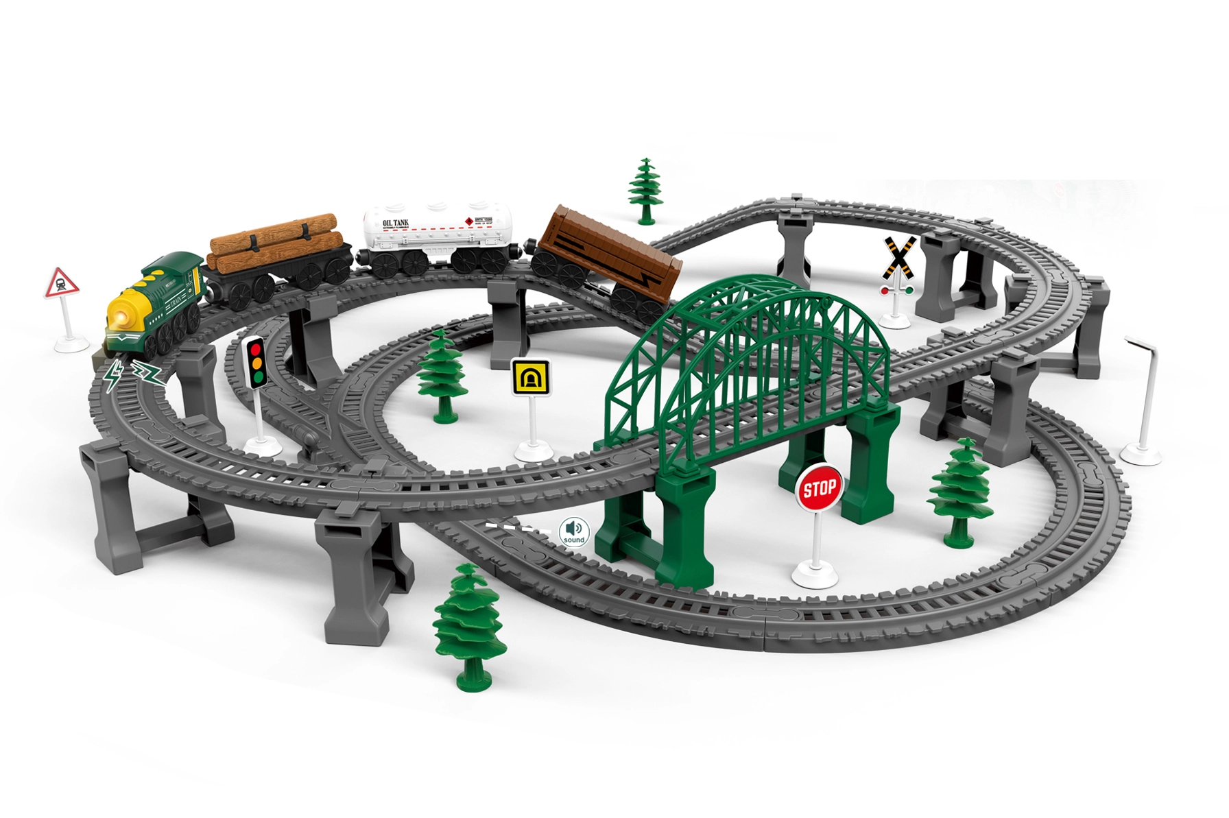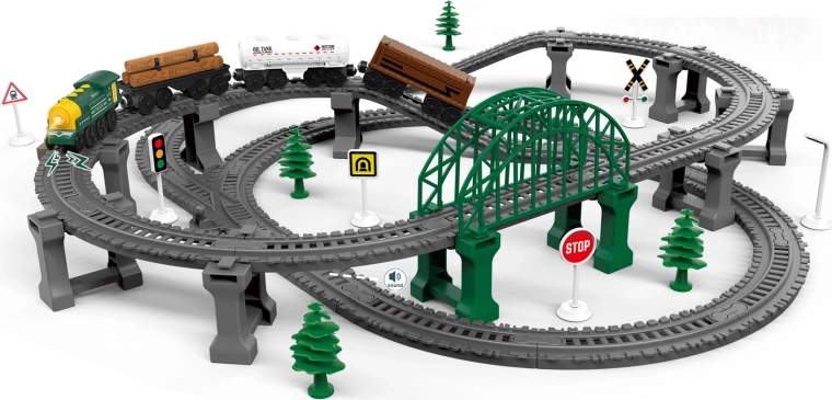 Dieses Eisenbahnset bietet Kindern stundenlangen kreativen Spielspaß. Dank magnetisch gekoppelter Waggons ist die Handhabung einfach und sicher. An der Lok finden Sie praktische Bedientasten – die mittlere dient als ON/OFF, mit den seitlichen Tasten bestimmen Sie die Fahrtrichtung. Ein spezieller Streckenabschnitt aktiviert Soundeffekte, die der Fahrt mehr Authentizität verleihen.