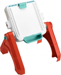 Die Staffelei verfügt über eine Papierklemme, ein Utensilienfach sowie seitliche Aussparungen für Stifte und Buntstifte. Ideal zum Zeichnen, Schreiben und für erste Kunstprojekte.