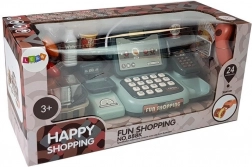 Im Lieferumfang ist alles enthalten: Kasse mit Waage und Kartenleser, Hand-Barcodescanner, Korb, Spielzeug-Lebensmittel (Kekse, Saft, Wasser, Eis, Cola, Gemüse), Zahlungskarte, Banknoten und 6 Kunststoffmünzen. Das Spiel ist maximal realistisch und fördert Fantasie sowie Feinmotorik.