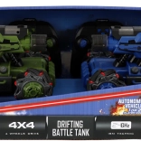 Erleben Sie spannende Gefechte mit zwei RC-Panzern auf der Frequenz 2,4 GHz. Dank Allradantrieb (4x4), der Fähigkeit zum Seitwärts-Driften und einem realistischen Raucheffekt (Dampf) bieten sie großartigen Spielspaß für Kinder und Erwachsene. Jeder Panzer ist mit Lichteffekten ausgestattet und wird mit einer leicht bedienbaren Funkfernsteuerung geliefert, mit Reichweite bis zu 18 m und Laufzeit bis zu 60 Minuten (je nach Batterien).