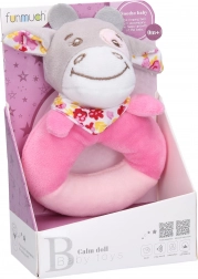 Diese Plüsch-Rassel in Ringform ist für kleine Kinderhände konzipiert. Das niedliche Kälbchen aus weichem Material bereitet Kindern Freude beim Fühlen und Hören. Die leichte Konstruktion erleichtert das Halten und das sanfte Rasseln unterstützt die auditive Wahrnehmung.