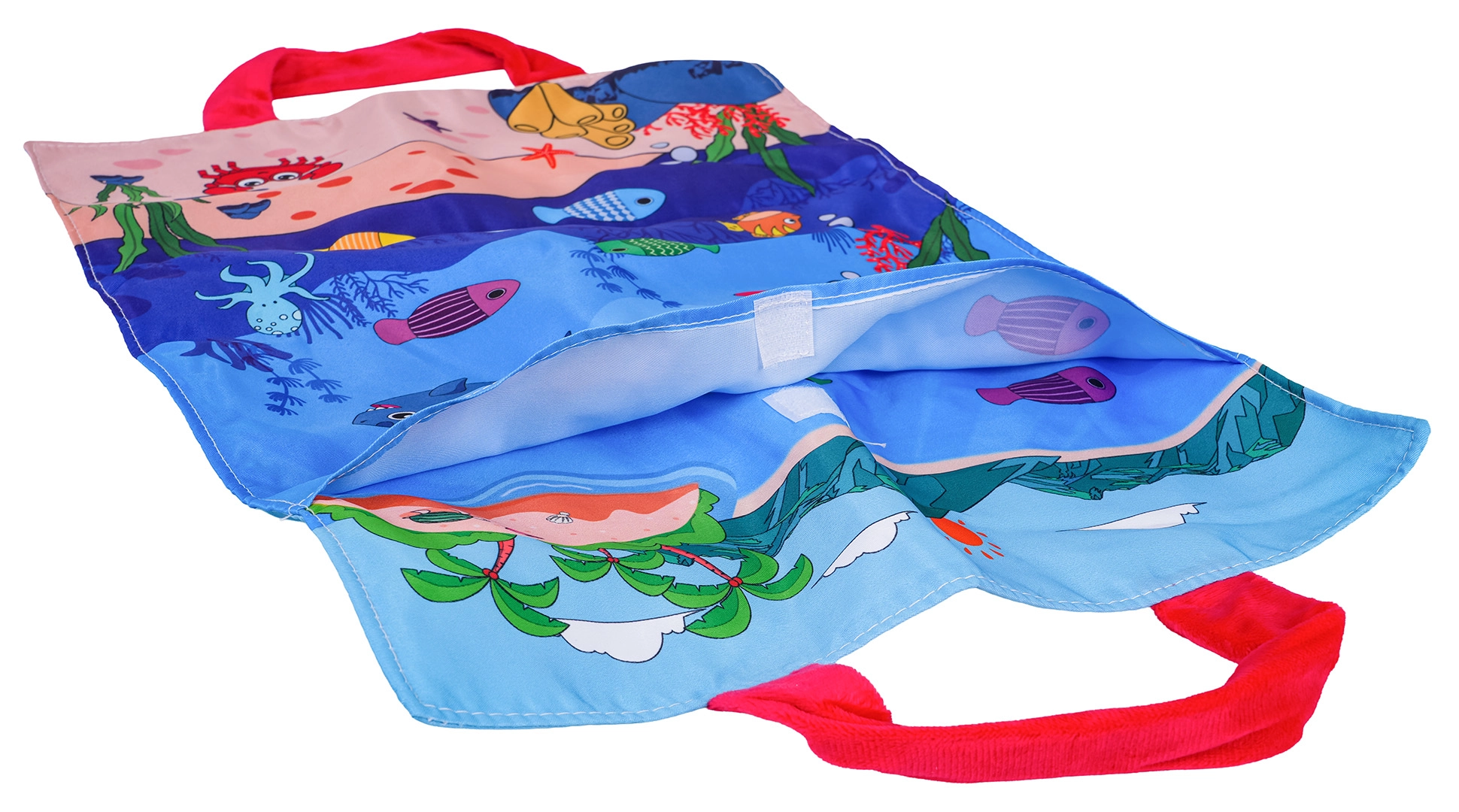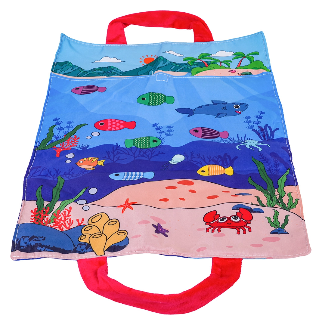 Die Meeresmotiv-Matte hat eingenähte Griffe und kann als Tragetasche verwendet werden. Alle Teile lassen sich einfach verstauen und auf Ausflüge oder Besuche mitnehmen.