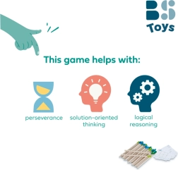 Dieses Logikspiel mit Holzstäbchen bietet smarte Unterhaltung, die Geduld und Ausdauer fördert – für die ganze Familie. Wählen Sie eine Aufgabe von der Karte, legen Sie die geforderte Form und überprüfen Sie die Lösung auf der Kartenrückseite. Dank des ansteigenden Schwierigkeitsgrads kommen Sie immer wieder gern darauf zurück.