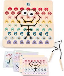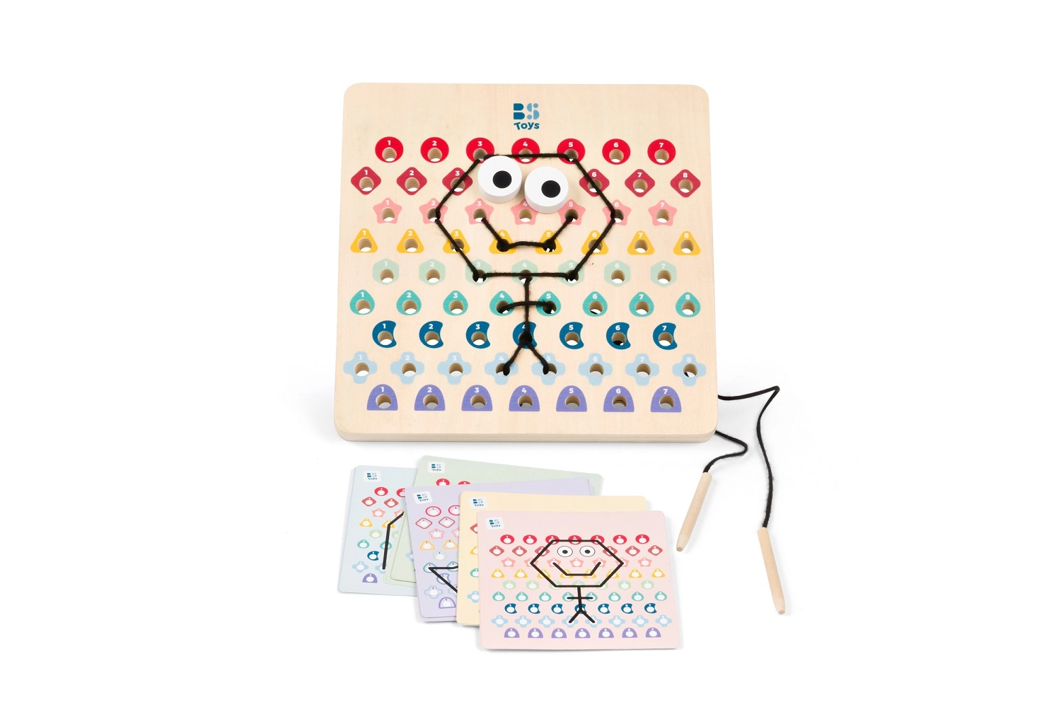 Kodiertes Sticken ist eine clevere und spaßige Aktivität, die Kinder in die Welt der Farben, Formen und Muster einführt. Einfach den Farbcodes auf den Karten folgen und die Schnüre durch die perforierte Holztafel fädeln, um präzise und eindrucksvolle Motive zu erstellen. Nach Fertigstellung kann die Karte umgedreht werden, um die Korrektheit des entstandenen Musters leicht zu überprüfen.