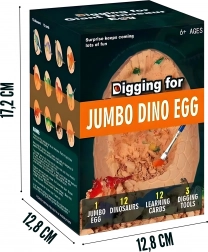 Ausgrabungs-Ei, 12 Dinosaurierfiguren, 12 Karten mit Beschreibungen, Hammer, Meißel, Pinsel