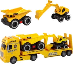 Entdecken Sie ein großes Bauset, das alle kleinen Fans von Arbeitsmaschinen begeistert. Der Abschleppwagen mit beweglicher Laderampe lädt die beiliegenden Fahrzeuge leicht auf und ab. Realistische blinkende Warnleuchten sowie Motor-, Hup- und Sirenengeräusche, die per Knopfdruck aktiviert werden, sorgen für Authentizität. Der Bagger verfügt über einen manuell steuerbaren Arm mit Schaufel, und der Kipper ist mit einer kippbaren Mulde für das „Abladen von Material“ ausgestattet.