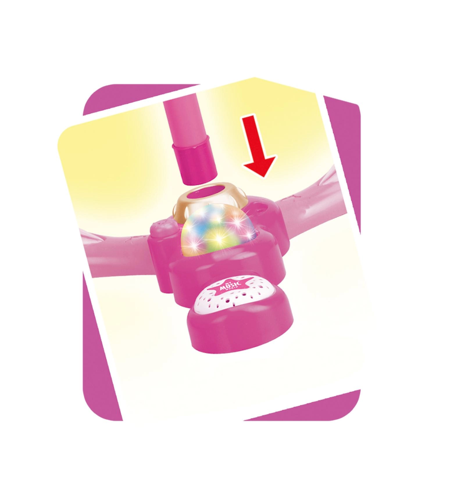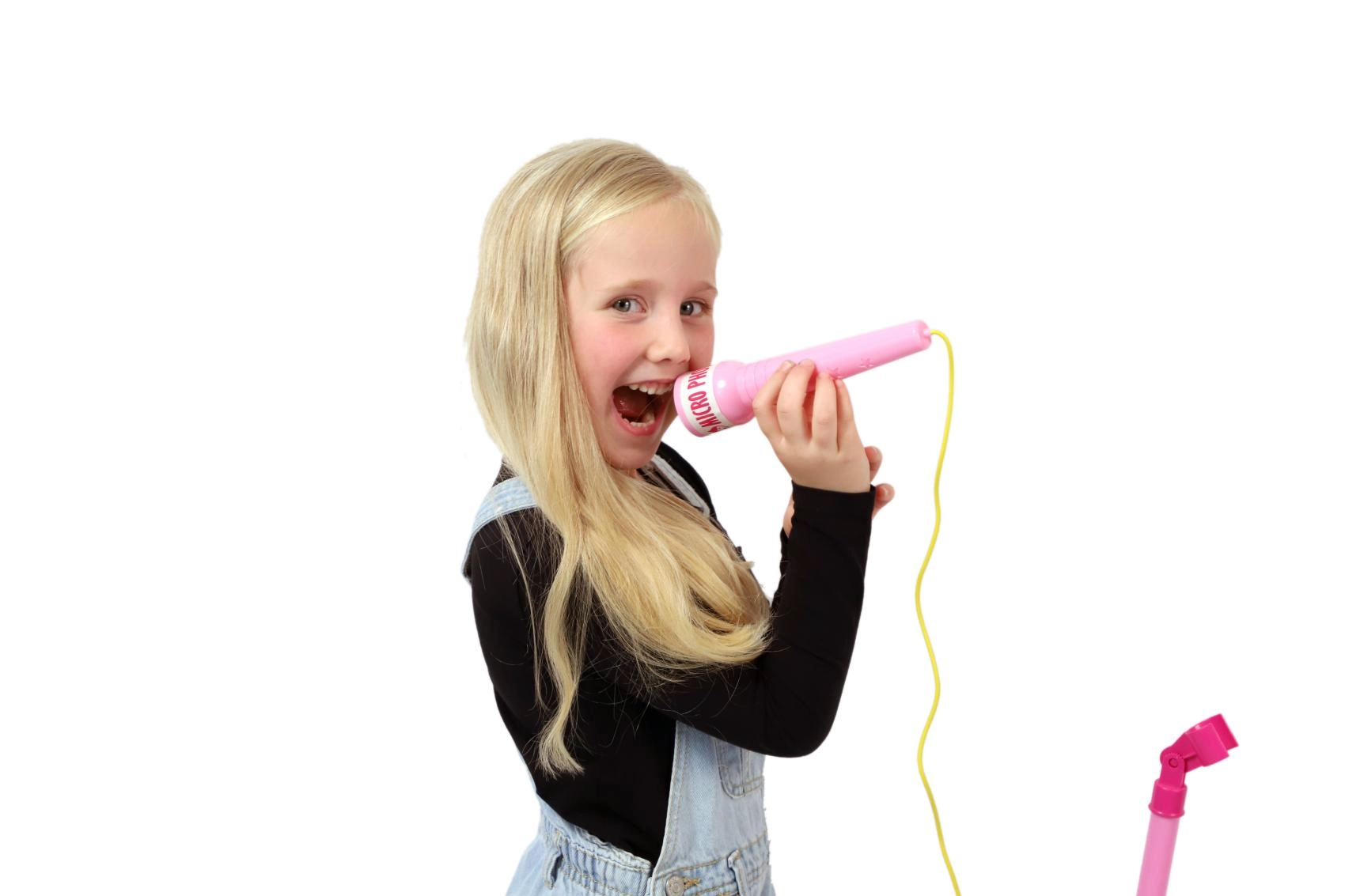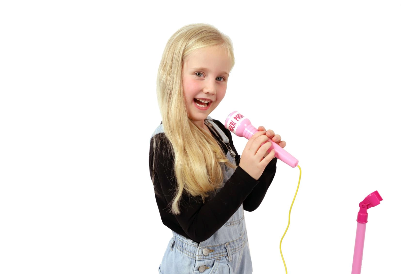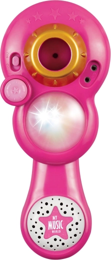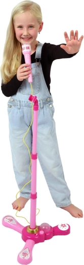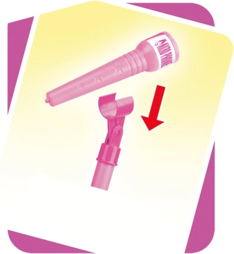 Veranstalten Sie zu Hause eine unvergessliche Karaoke-Show. Dieses rosa Mikrofon mit stabilem Dreibein-Stativ begeistert mit Lichteffekten und spielt 12 vorinstallierte Lieder ab. Ein MP3-Player oder ein Mobiltelefon lässt sich problemlos anschließen, um Lieblingshits abzuspielen.