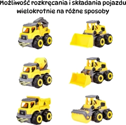 Das Modell besteht aus robustem ABS mit sicher abgerundeten Kanten. Große Räder mit gummiertem Profil sorgen für guten Grip auf verschiedenen Untergründen. Dank austauschbarer Teile kann das Fahrzeug wiederholt auseinander- und zusammengebaut werden – ideal zur Förderung von Fähigkeiten und Fantasie.