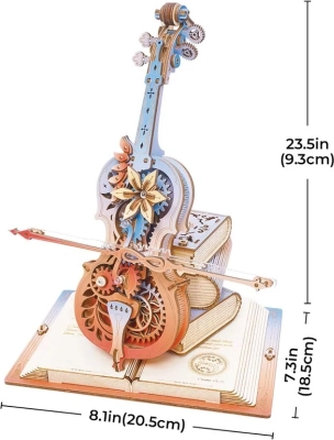 Das Magische Violoncello ist ein stilvolles hölzernes mechanisches Puzzle und eine Spieluhr in einem. Nach dem Zusammenbau bewegt sich der Bogen anmutig, die Zahnräder erwachen leise zum Leben, und an der Spitze dreht sich eine elegante Lilie. Das Ganze steht auf einem Sockel, der an offene Bücher erinnert – ein Symbol für Fantasie und Kunst, das das Modell zu einer außergewöhnlichen Dekoration für Wohnzimmer, Arbeitszimmer und Studentenzimmer macht.