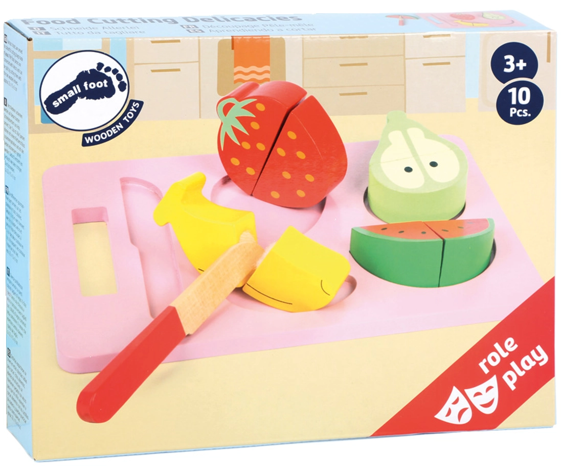 Bereiten Sie Kindern ein unterhaltsames und zugleich lehrreiches Spiel mit dem Holzset von Small Foot. Sicheres Schneiden von Obst auf dem Brett mit einem Holzmesser fördert Feinmotorik, Koordination und Fantasie. Die Obststücke werden mit Klettverschluss zusammengehalten, sodass Kinder sie immer wieder „halbieren“ können. Geeignet für Kinder ab 3 Jahren.