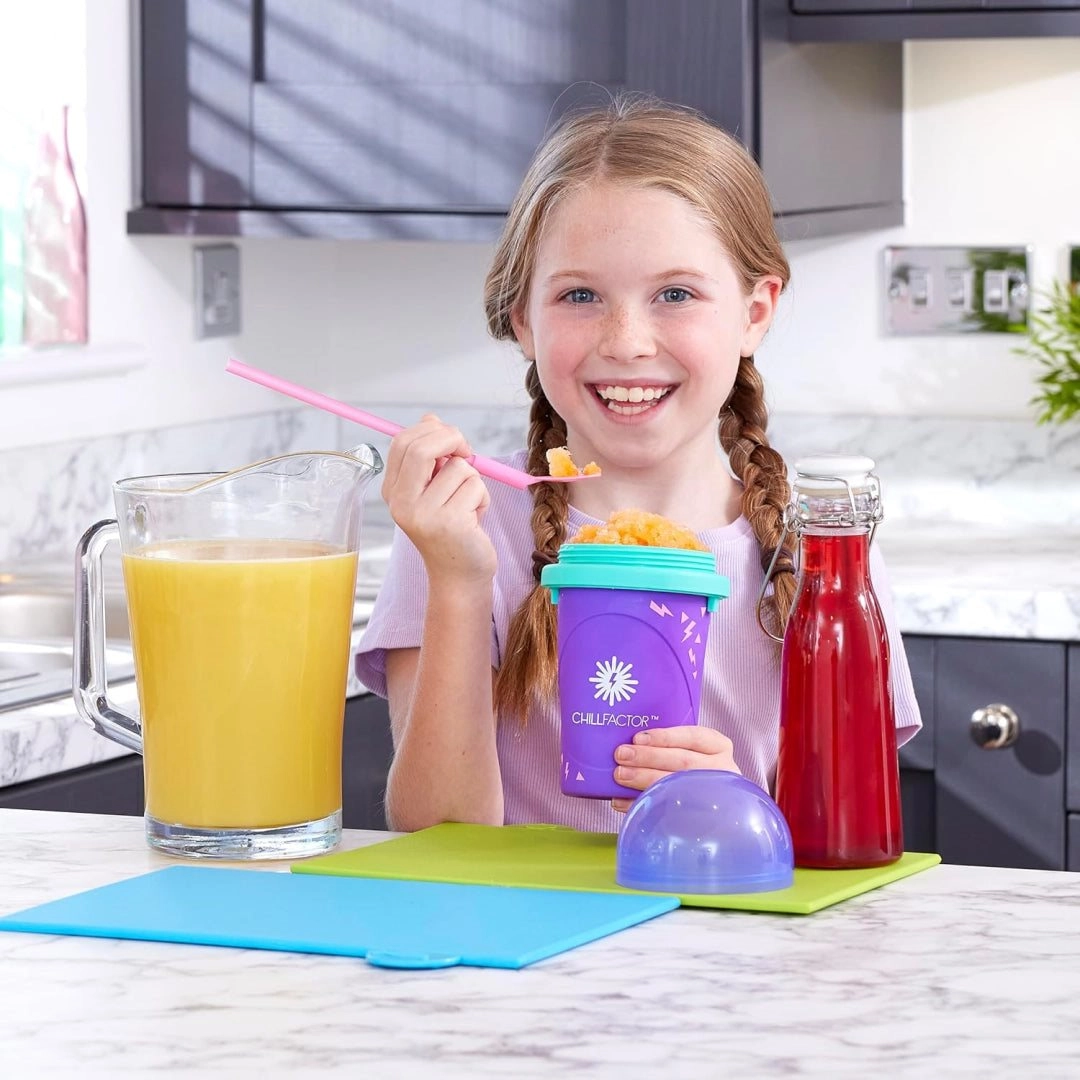 Genieße Erfrischung, wann immer du willst – der CHILLFACTOR Slushy Maker verwandelt dein Lieblingsgetränk in wenigen Minuten in Slush-Eis. Dank der einfachen Anwendung geht die Zubereitung schnell und macht Spaß: Becher ohne Deckel 8–10 Stunden ins Gefrierfach legen, gekühltes Getränk einfüllen, Deckel aufschrauben und kneten. Im Nu hast du perfektes Slush.