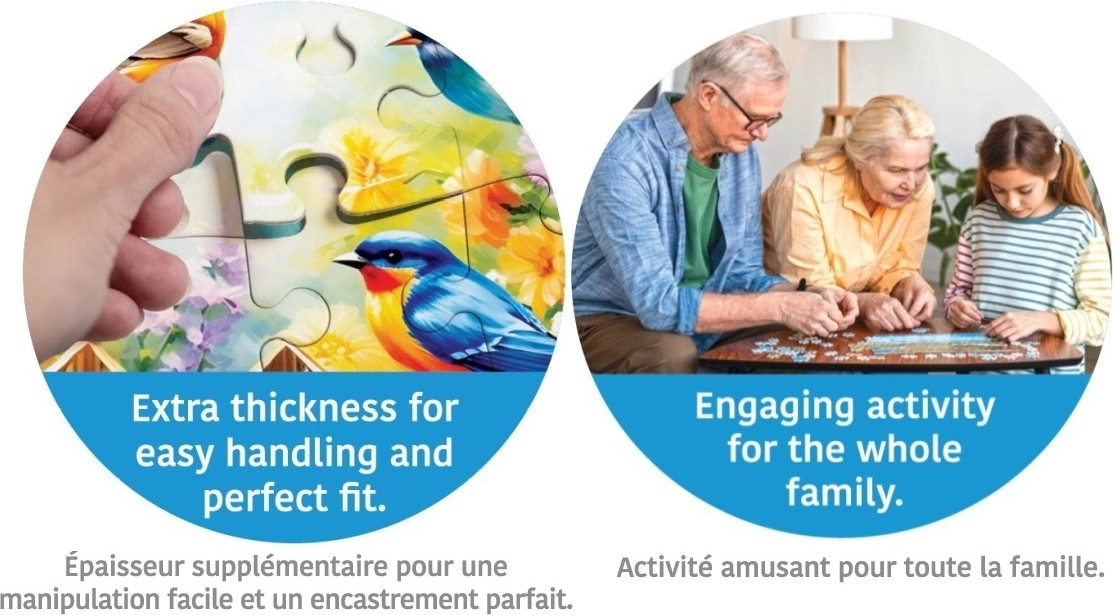 Die Puzzle der Connecting Pieces-Kollektion sind so gestaltet, dass sie für alle zugänglich und freudvoll sind. Dank der größeren Teile lassen sie sich leicht greifen, was das Training der Feinmotorik sowie die Konzentration unterstützt. Das Motiv „Ruhiges Leben“ strahlt eine friedliche Atmosphäre aus, die zur Entspannung beiträgt und Stress reduziert.