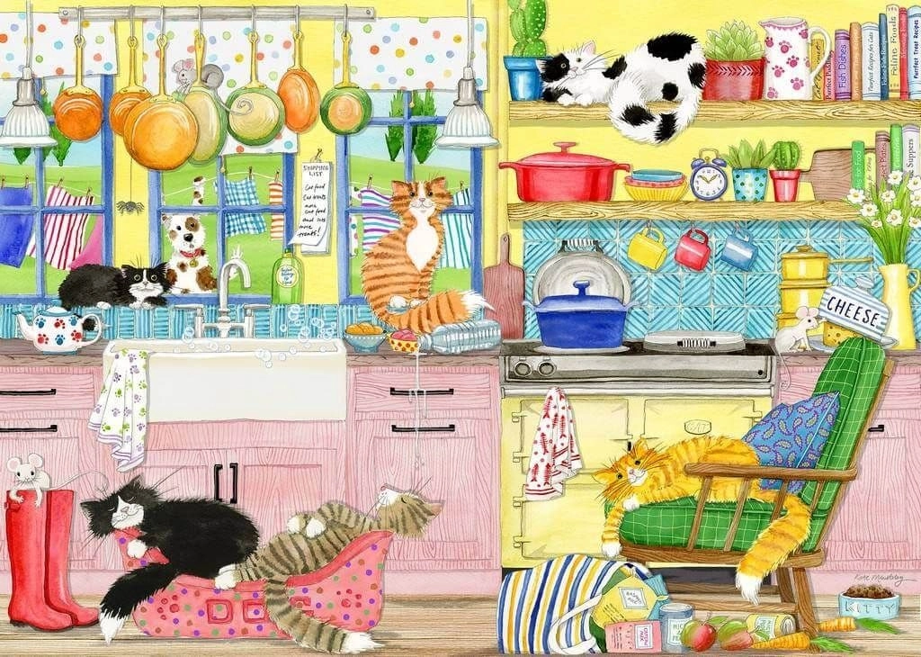 Entdecken Sie die verspielte Welt der Katzen mit der Kollektion Katzenkatastrophe von GIBSONS. Das Set enthält vier separate Puzzles, jeweils mit 500 Teilen und identischem Endformat. Dank der beiliegenden Vorlagen haben sowohl Anfänger als auch erfahrene Puzzle-Fans Freude am Zusammensetzen.