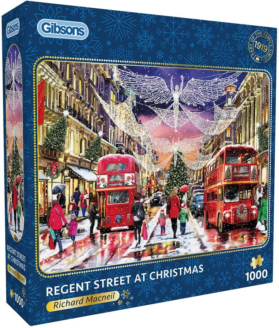 Entdecken Sie eine detailreiche Winterszenerie der ikonischen Regent Street mit festlicher Dekoration. Das Puzzle von GIBSONS ist bekannt für seine hohe Verarbeitungsqualität, passgenauen Stanzungen und satten Farben, die das Puzzeln vom ersten bis zum letzten Teil zum Vergnügen machen.