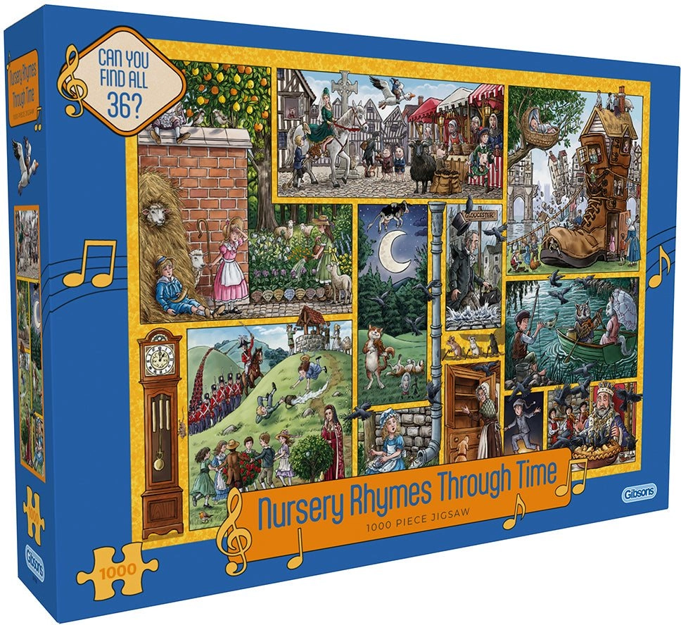 Begeben Sie sich auf eine Reise durch die Zeit mit dem thematischen Motiv beliebter Reime und illustrierten Szenen, die Kinder wie Erwachsene begeistern. Das Puzzle von GIBSONS ist bekannt für seine präzise Verarbeitung und angenehm greifbare Teile, die ein reibungsloses Puzzelerlebnis garantieren.