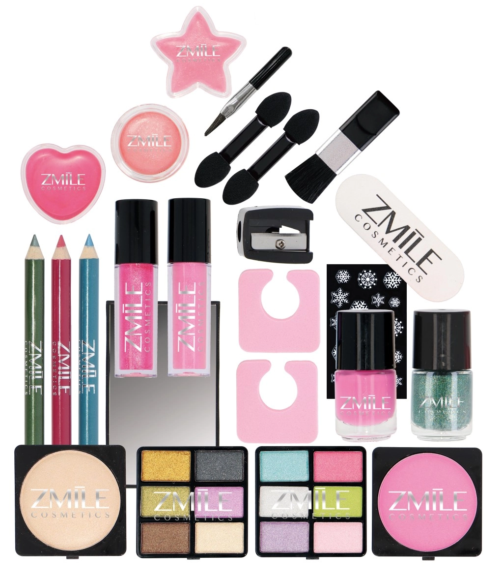 Lippen-Glosse, Rouge, Lidschatten, Konturenstifte für Augen und Lippen, Spitzer, Zehenspreizer, Nagelfeile, Lidschatten-Applikatoren, Pinsel, Nagellacke, Nagelsticker