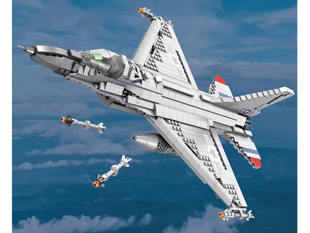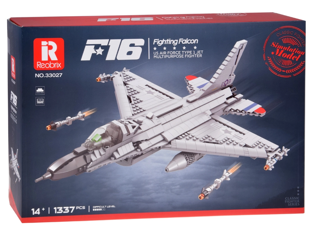 Dieses realistische REOBRIX-Bauset bringt die legendäre F‑16 in beeindruckenden Proportionen mit präzise ausgearbeiteten Details – von den aerodynamischen Flügeln bis zur charakteristischen Heckdüse. Dank der robusten Konstruktion aus widerstandsfähigem ABS-Kunststoff ist das Modell stabil beim Ausstellen wie auch beim Handling.