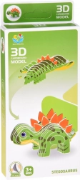 Die kreative 3D-Pappbastelarbeit verwandelt flache Teile in einen farbenfrohen Stegosaurus mit leuchtend orangefarbenen Rückenplatten. Die Teile müssen nur herausgedrückt und nach der einfachen Anleitung auf der Verpackung zusammengesetzt werden – ohne Schere und Kleber.