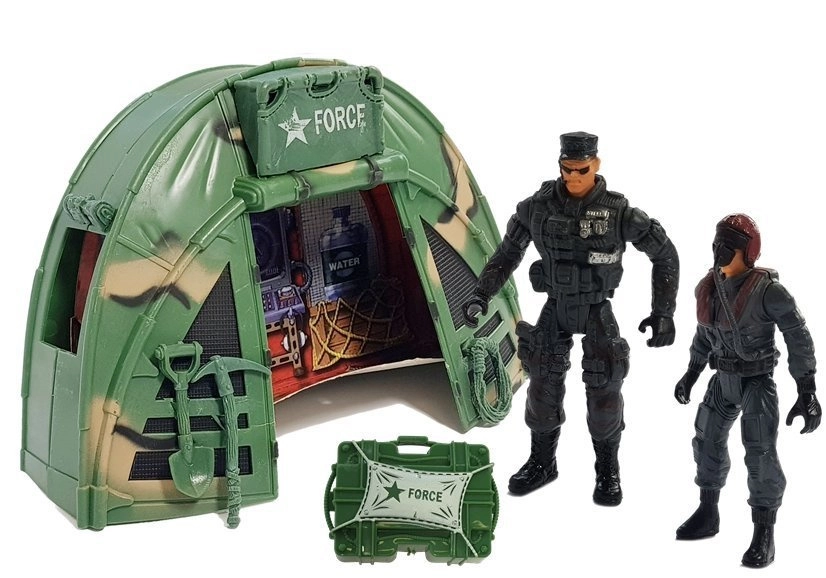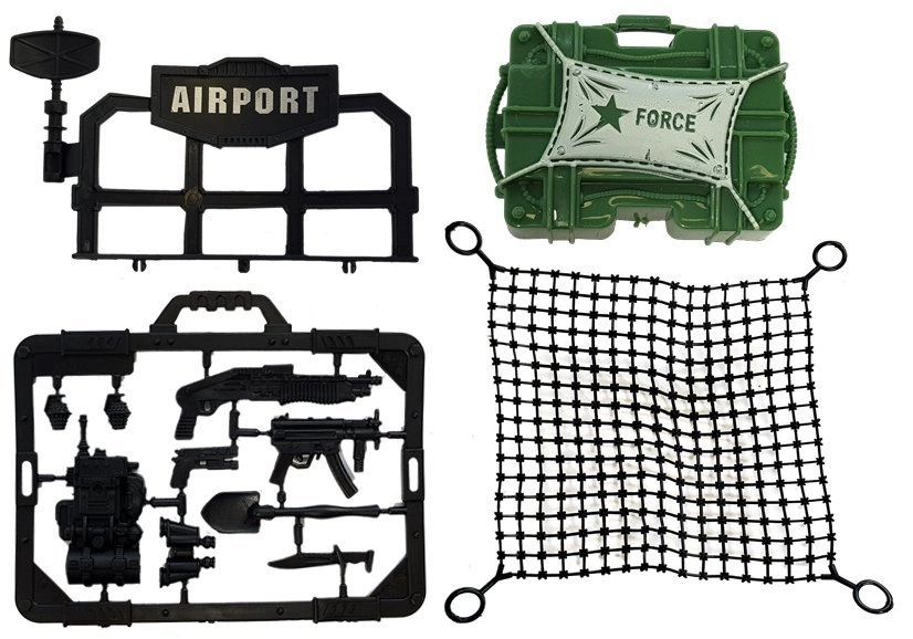 - Komplette Ausstattung: 3 Soldatenfiguren, Boot, SWAT-Hubschrauber, Landeplattform, Zelt/Kommandocenter, Waffenset und großes Netz.