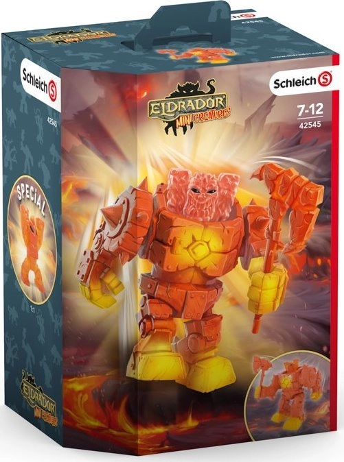 Der superstarke Lava-Roboter aus der SCHLEICH Eldrador Mini Creatures Kollektion ist für Action gemacht. Dank beweglicher Arme und austauschbarer Lava-Axt kann er gefrorene Felsen „zersplittern“, Lavaflüsse bändigen und sich Gegnern aus allen Ecken Eldradors stellen. Im Kontrollzentrum kann das Miniwesen – der Lava-Lord sitzen, das in diesem Set exklusiv enthalten ist.