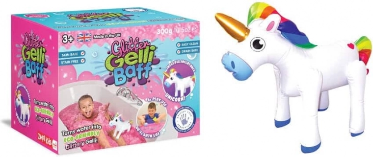 150 g Gelli (16 Beutel), rosa Glitzer, 150 g Reiniger/Auflöser, 30 cm aufblasbares Einhorn