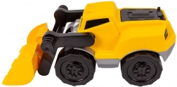 Die bewegliche Schaufel ermöglicht das Aufnehmen und Auskippen von Material und fördert kreatives, realistisches Bauspiel.