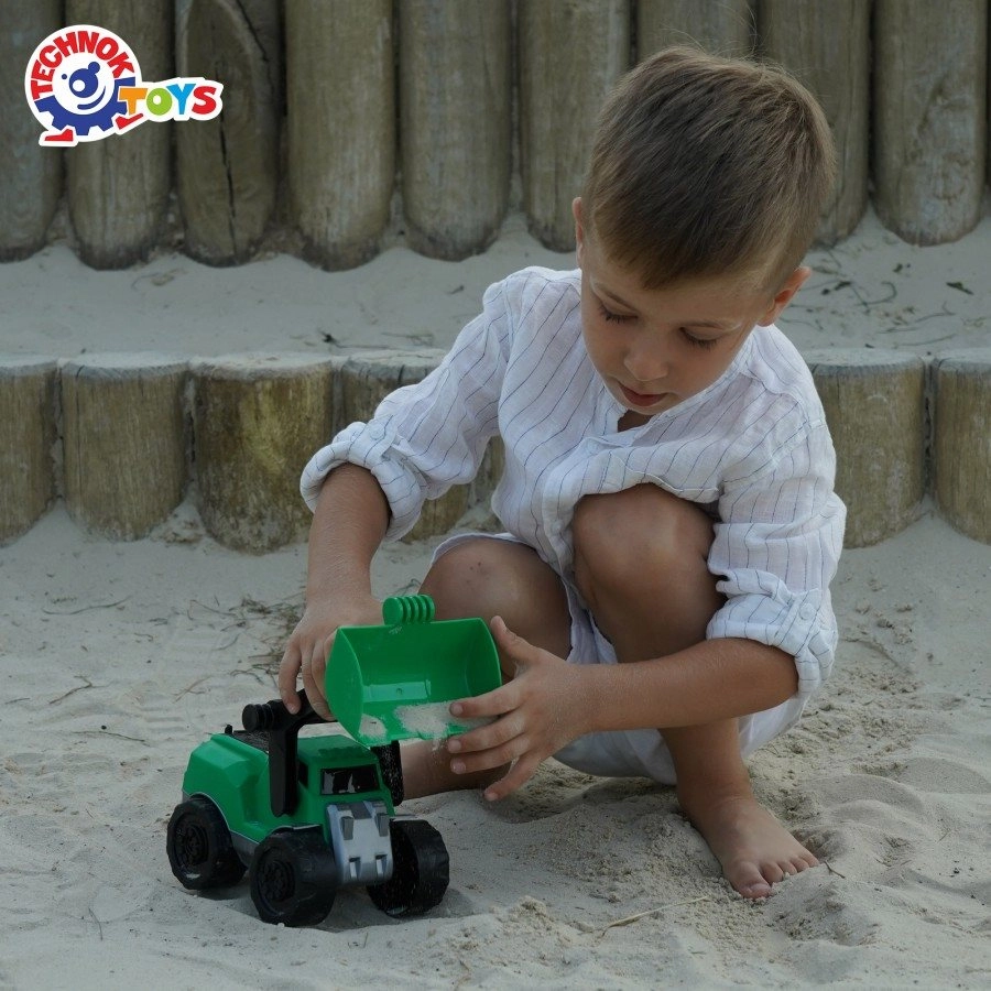 Baue deine eigene Baustelle mit dem robusten Technok-Radlader. Dank freilaufender Räder und funktionaler Frontschaufel erleben Kinder realistisches Spiel – ob im Sandkasten, im Garten oder im Kinderzimmer. Die kompakte Länge von 28 cm sorgt für bequemes Greifen und einfache Handhabung.
