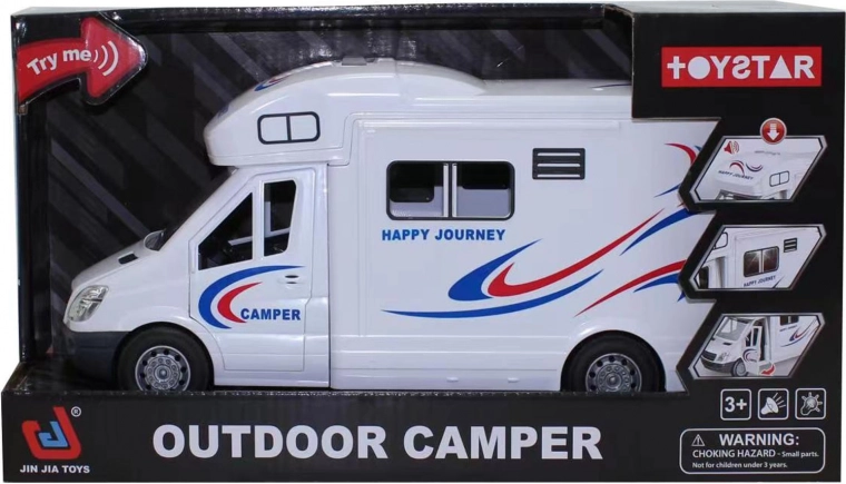Entdecke den Reisespaß mit diesem weißen interaktiven Wohnwagen für Kinder ab 3 Jahren. Er bietet Licht- und Soundeffekte, öffnende Seiten- und Hecktüren sowie ein Dach, Gummireifen und Power-Friction-Antrieb für eine geschmeidige Fahrt. Hergestellt aus hochwertigem, sicherem Kunststoff, inklusive Batterien im Lieferumfang.