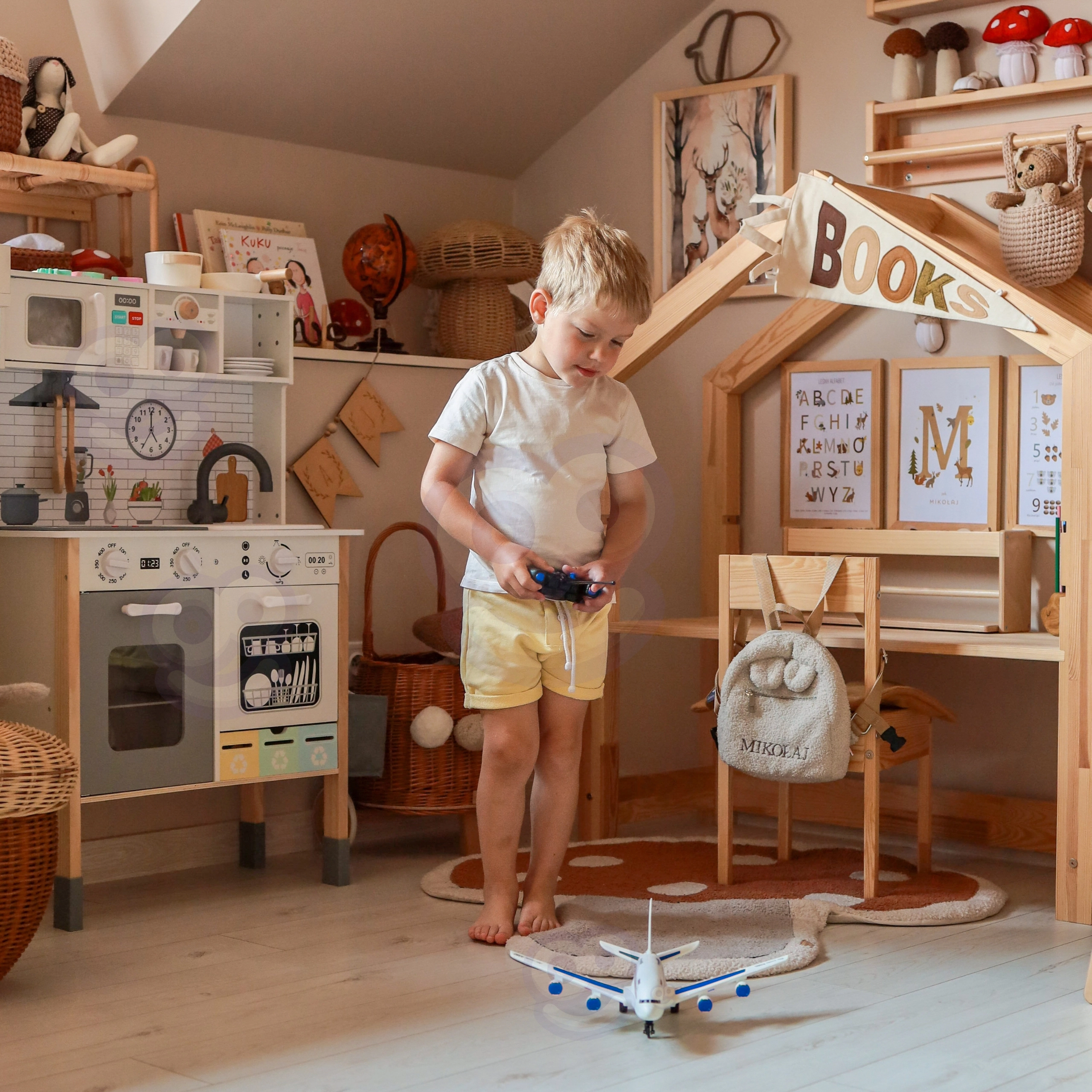Die Steuerung ist intuitiv über die übersichtliche Fernbedienung, sodass Kinder schnell manövrieren lernen und Koordination und Kreativität entwickeln. Im Lieferumfang enthalten sind ein aufladbarer Akku für das Flugzeug sowie ein Ladekabel. Für den Controller werden 2× AA-Batterien benötigt (nicht enthalten).