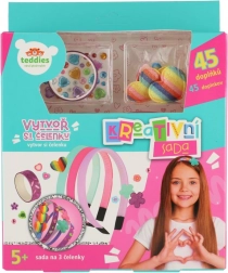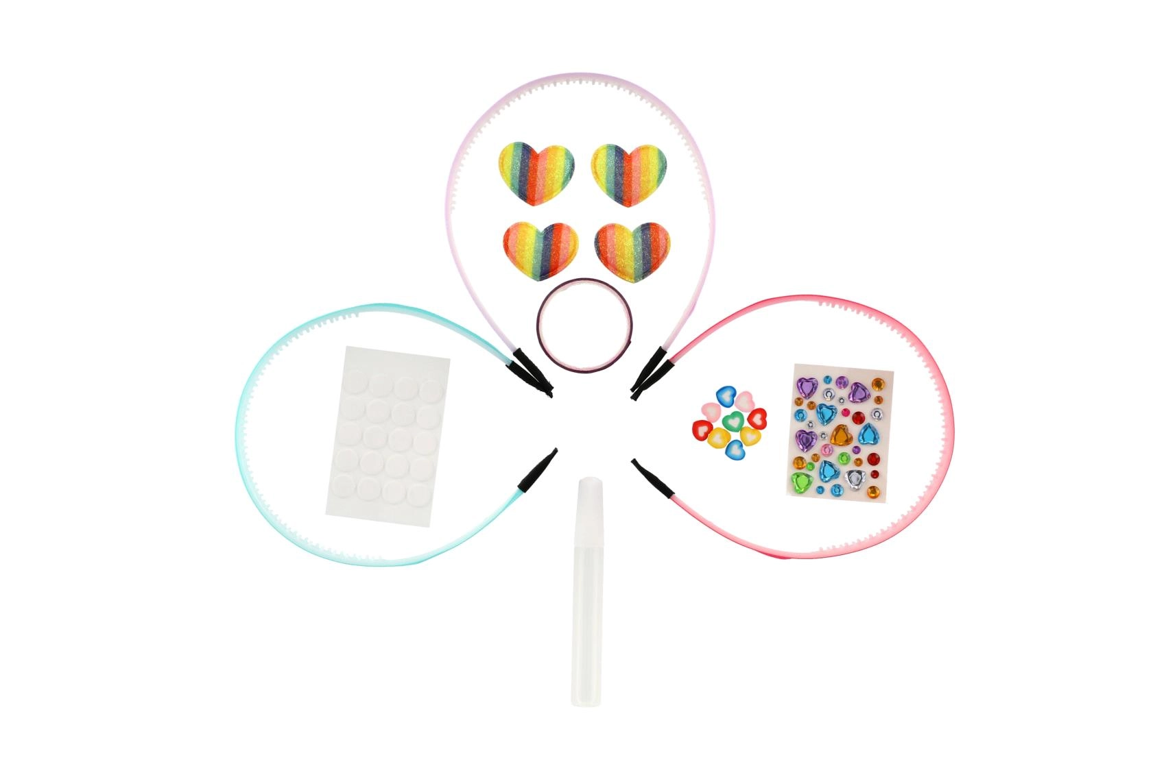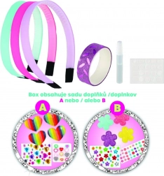 Gestalten Sie originelle Haarreifen ganz nach Ihrem Geschmack. Das Set enthält drei Basis-Haarreifen und eine Vielzahl an Dekorationen, mit denen einzigartige Kombinationen entstehen – von bunt und verspielt bis hin zu dezent und zart. Der einfache Ablauf ist auch für jüngere Kinder geeignet, die beim Basteln Geduld und Feinmotorik trainieren.