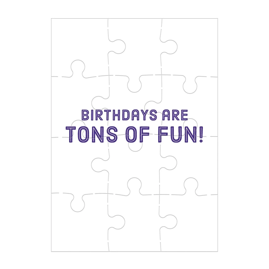 Dieses einfallsreiche Glückwunsch-Puzzle ist ideal, um eine Geburtstagsbotschaft originell zu übermitteln. Schreiben Sie Ihren Wunsch auf die Rückseite des Puzzles, legen Sie die Teile in den Umschlag, und beim Puzzeln erwartet das Geburtstagskind eine schöne Überraschung – nach dem Fertigstellen liest es Ihre persönliche Nachricht.