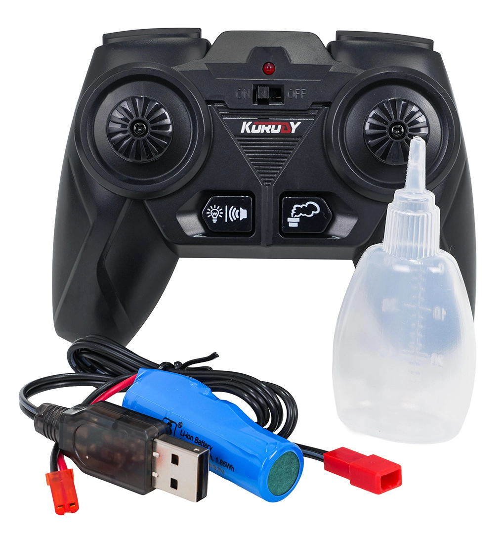 Vorwärts/rückwärts und links/rechts ohne Störungen. Inklusive Fernsteuerung, USB-Ladekabel und 3,7-V-Akku.