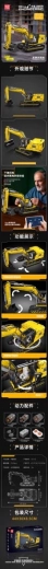 Dieser hochwertige Konstruktionsbausatz begeistert alle Technikfans. Aus den Teilen bauen Sie einen detaillierten Bagger mit robuster, widerstandsfähiger Kunststoffkonstruktion, der sich vorwärts und rückwärts bewegt, rechts und links lenkt und dank Gummiketten unterschiedliches Terrain meistert. Die Steuerung erfolgt im Dualmodus – entweder über den 2,4‑GHz‑Controller oder über die Mobile App (QR‑Code befindet sich auf der Verpackung). In der App lassen sich zudem Bewegungen programmieren und eigene Sequenzen erstellen.