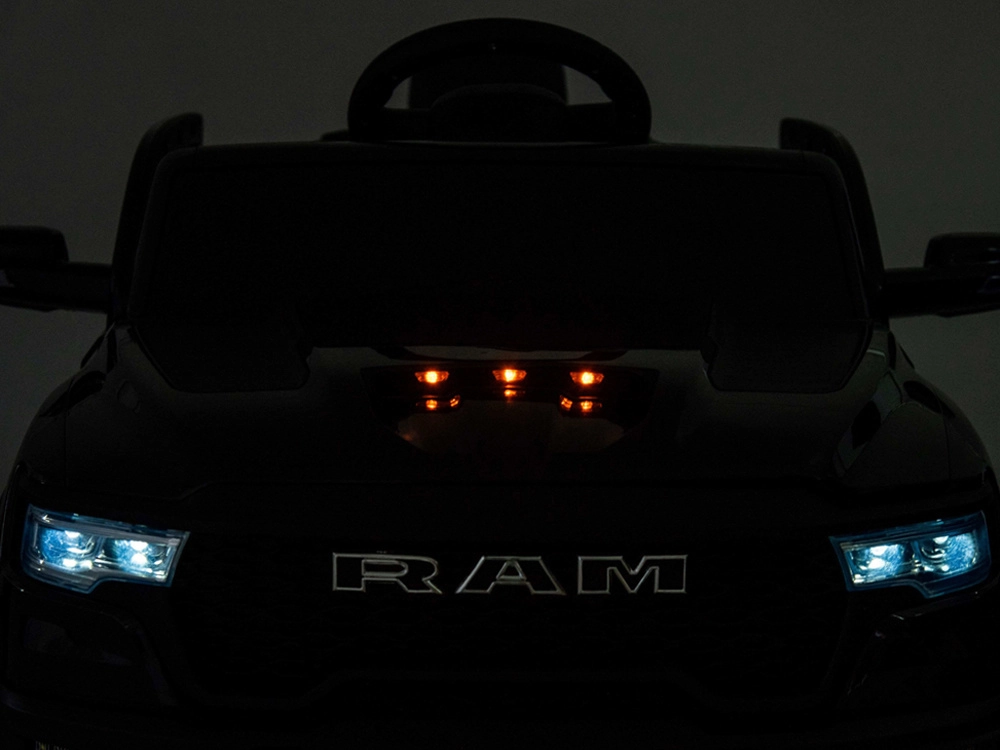 Das robuste und stabile Elektroauto für Kinder, inspiriert vom ikonischen RAM‑Pickup, meistert Asphalt, Pflaster und Rasen. Ein Schalter für hohe/niedrige Geschwindigkeit, die Wahl vorwärts/rückwärts und das geschützte Umschalten des Modus von RC auf manuelle Fahrt ermöglichen sicheres Lernen sowie selbstständiges Fahren. Beim Starten leuchten die Frontscheinwerfer und es ertönt ein realistischer Motorsound.