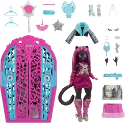 Entdecken Sie die Geheimnisse von Hauntlywood mit der MONSTER HIGH Puppe aus der Reihe Skulltimate Secrets. Gehen Sie mit einem „magischen“ Schlüssel auf Spurensuche, folgen Sie den Hinweisen auf der Karte und schalten Sie über 19 Überraschungen frei – von glitzernden Outfits über schaurige Handschuhe bis hin zu funkelndem Schmuck. Alles findet Platz im sternenklaren Kleiderschrank, der als Aufbewahrung und Spielszene dient.