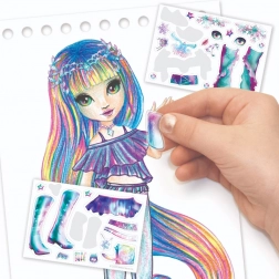 Enthält 2 Schablonenseiten (28 Teile), 10 Farbstifte und 6 Stickerbögen. Entwerfen, ausmalen und Mode-Stile Schritt für Schritt gestalten.