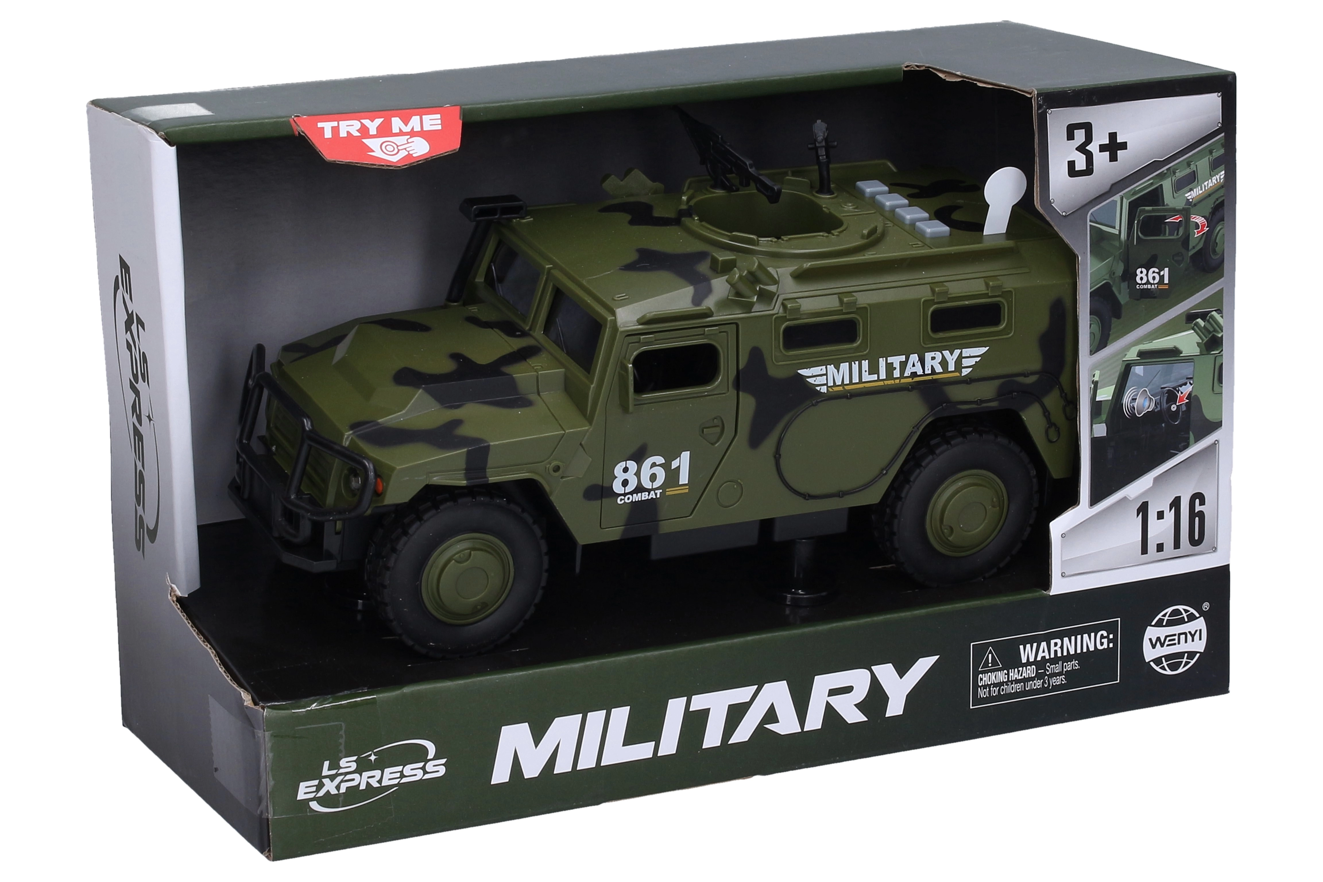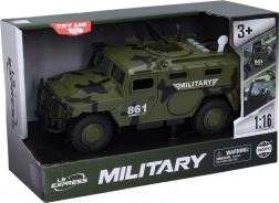 Machen Sie kleinen Fans von Militärtechnik eine Freude mit diesem detailreich gestalteten Militärfahrzeug. Dank des Schwungrads genügt ein Anschubsen und das Fahrzeug fährt von selbst los. Tasten auf dem Dach aktivieren eindrucksvolle Licht- und Geräuscheffekte, die das Spiel intensivieren und die Fantasie anregen.